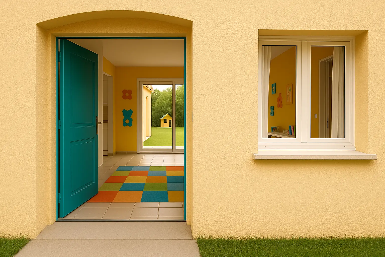 La maison est conforme aux normes de sécurité de la PMI. Tout est pensé pour la sécurité et l’autonomie : coins arrondis, mobilier adapté, zones différenciées selon l’âge.